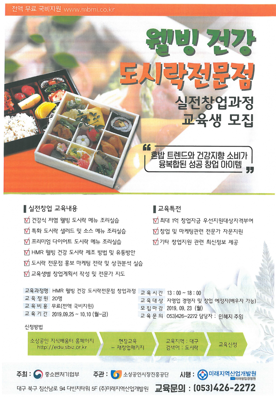 2019년 HMR 웰빙건강도시락 전문과정 5기 모집
